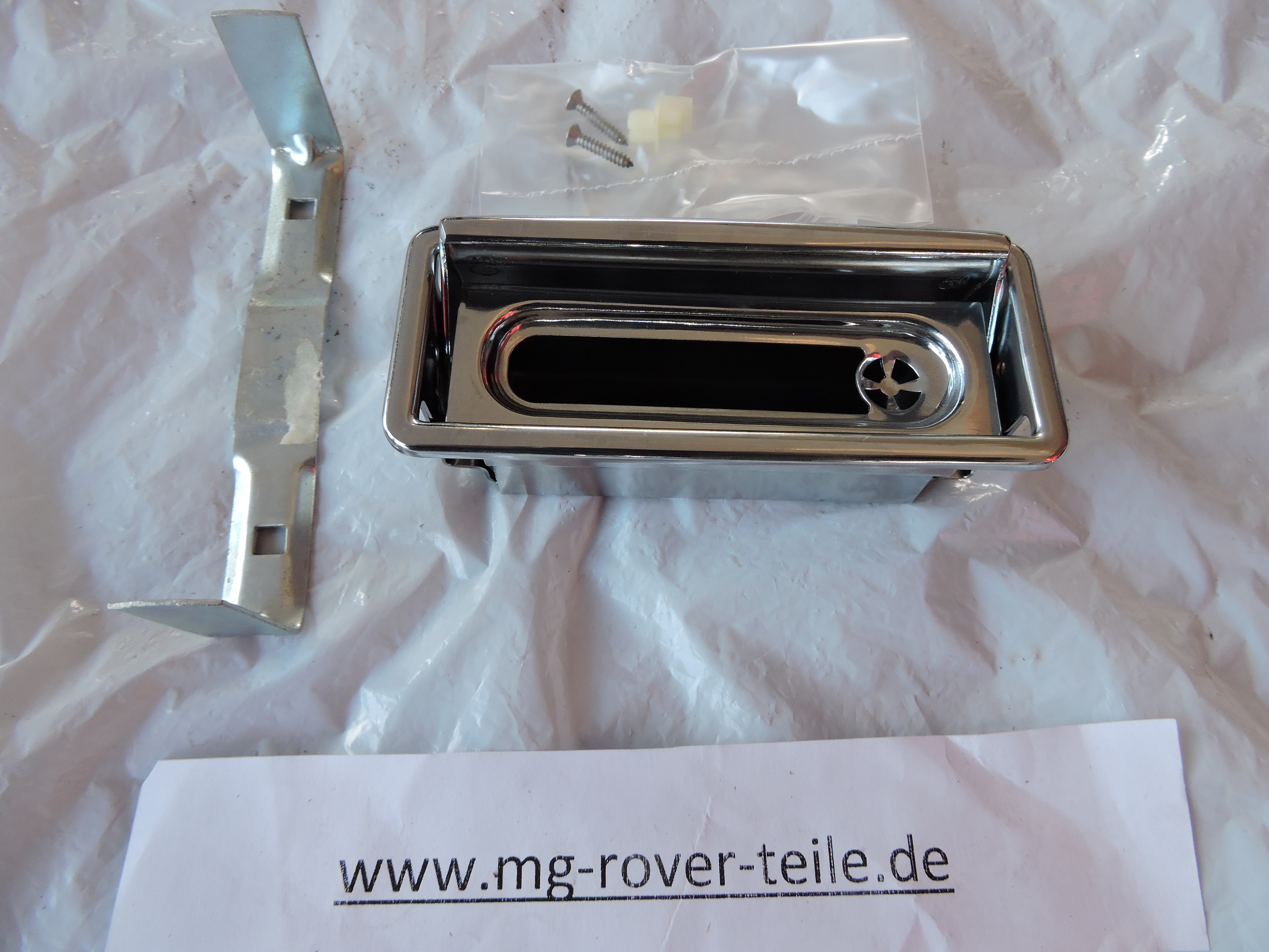 neuer, originaler Aschenbecher in Chrom mit diversem Montagematerial