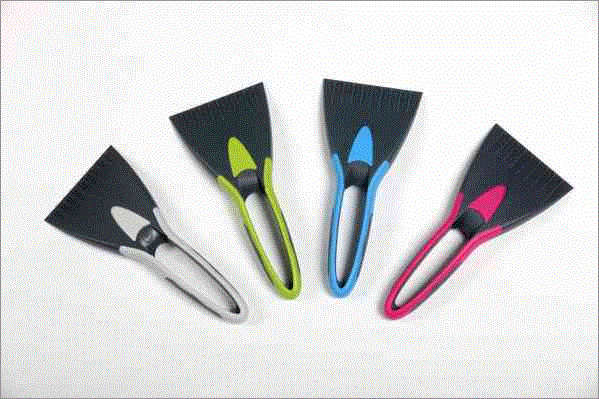 Ein Eisschaber 2K Korpus aus stabilem Kunstoff, weiche Griffeinlage, bunt.